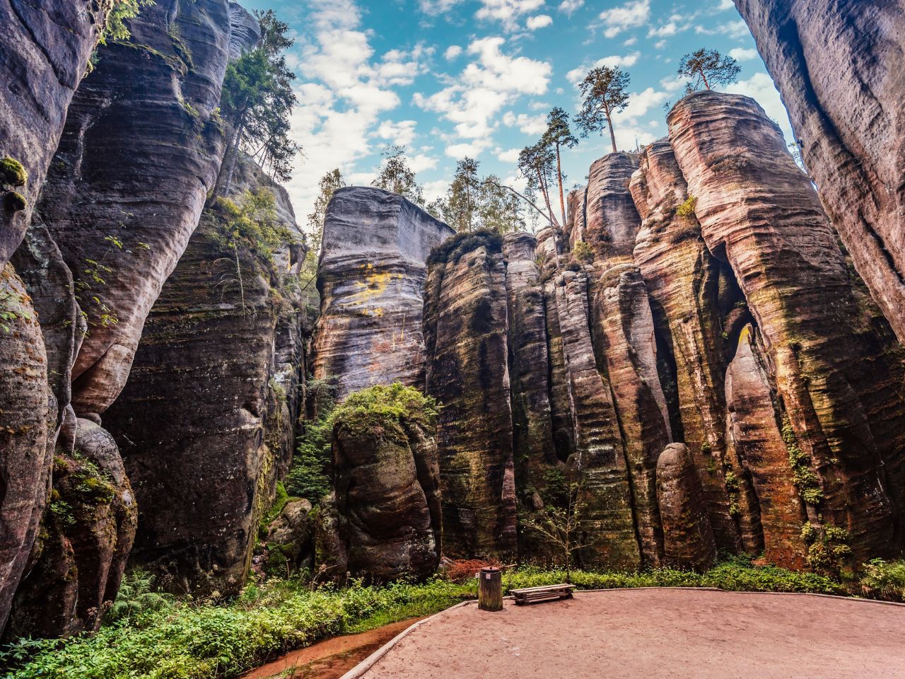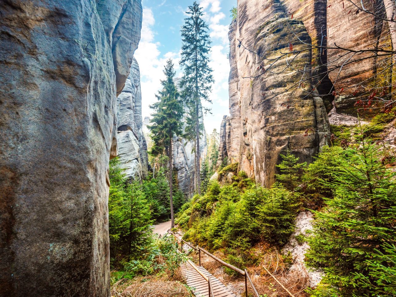 Nieopodal Pragi, w północno-wschodnich Czechach, znajduje się jedno z najbardziej niezwykłych miejsc przyrodniczych kraju – Skalne Miasto Adršpach. To bajkowy labirynt piaskowcowych formacji skalnych, wąskich wąwozów i ukrytych jezior, który zachwyca miłośników natury i fotografii. Spacer wśród monumentalnych skał przypomina podróż przez inny świat, a malownicze trasy i punkt widokowy pozwalają podziwiać unikalne krajobrazy, które powstały miliony lat temu.